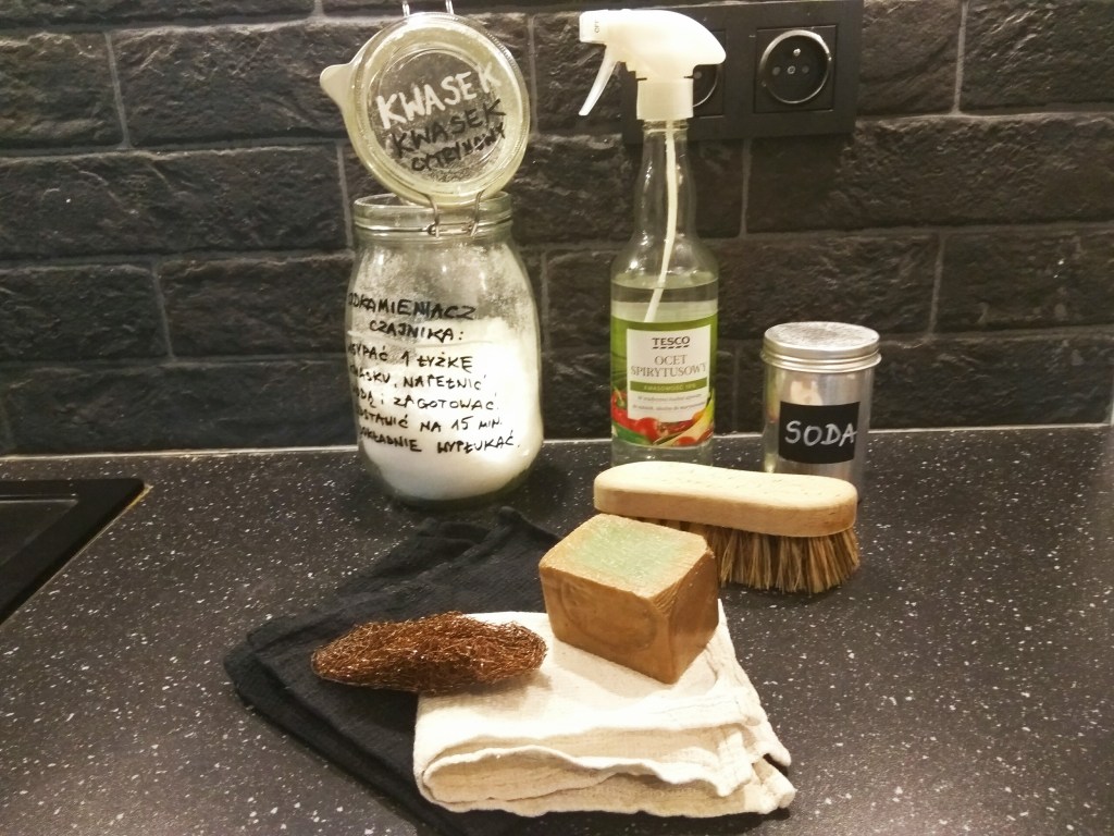 W butelce z atomizerem rozpuść 10 g kwasku w 150 g wody. Używaj do czyszczenia blatów kuchennych, zlewu, stołu, armatury łazienkowej. TIP: Można dodać 10 kropli ulubionego olejku eterycznego (np. cytrynowego, lawendowego, miętowego, eukaliptusowego).