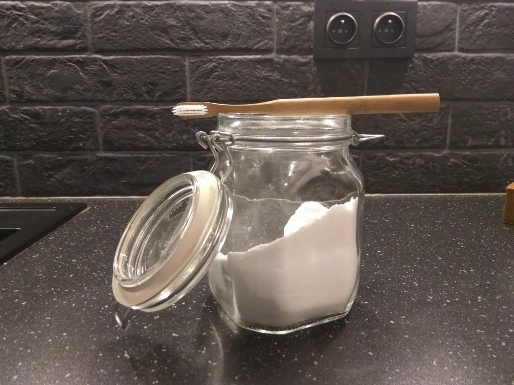 – soda (stopień ścierania zębów przy myciu sodą wynosi tylko 7 RDA, konwencjonalnej pasty do zębów 30-200 RDA)