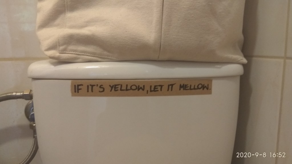 Pandemia zwaliła z nóg moją jednoosobową firmę i baaardzo mi brakuje prowadzenia warsztatów i wykładów o zero waste. Wyżywam się więc zostawiając np. w łazience gustowne napisy i i inspirujące książki. Nie tracę nadziei, że kogoś zainteresuję stanem świata: