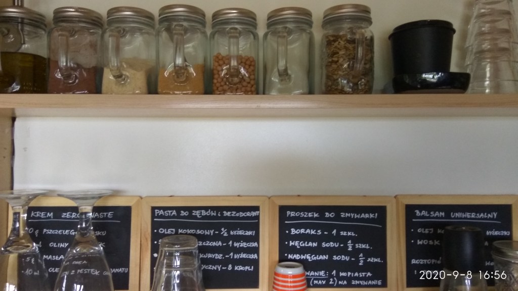 Mimo, że nie odróżniam osiki od olchy, to mam klarowną wizję tego, jakie ma być w przyszłości moje małe gospodarstwo. Zero waste jest i będzie wartością nadrzędną. Prawdę mówiąc, to weszło mi w krew i stało się całkiem naturalnym odruchem. Muszę jedynie dopasować się do nowych warunków i stylu życia. Na przykład nie mam tu ulubionego Odważnika, ale dzięki cudownym sprzedawczyniom z jedynego sklepu we wsi też wracam prawie bez opakowań. Grunt to nie zapominać, że ,,najlepszy zerowaster jest nieidealny, ale za to pełen zapału”.